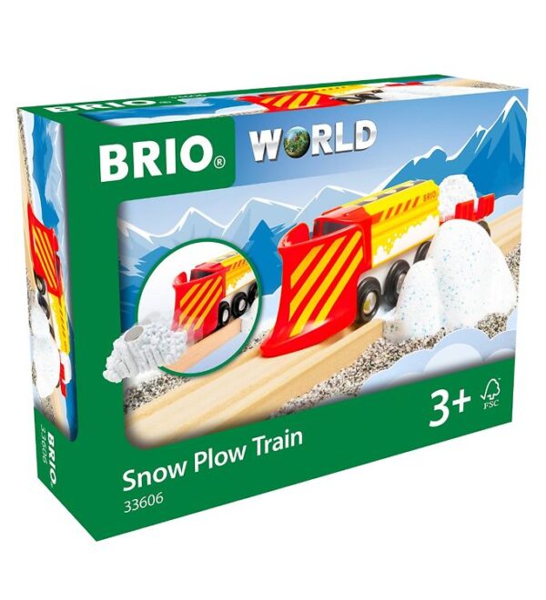Deze BRIO set bestaat uit een trein met een sneeuwschuiver, een wagen met een uitneembare houder voor sneeuw of andere zaken. Er is ook een rail gemaakt van plastic sneeuw en een klont sneeuw die over de rails kan worden geschoven.
