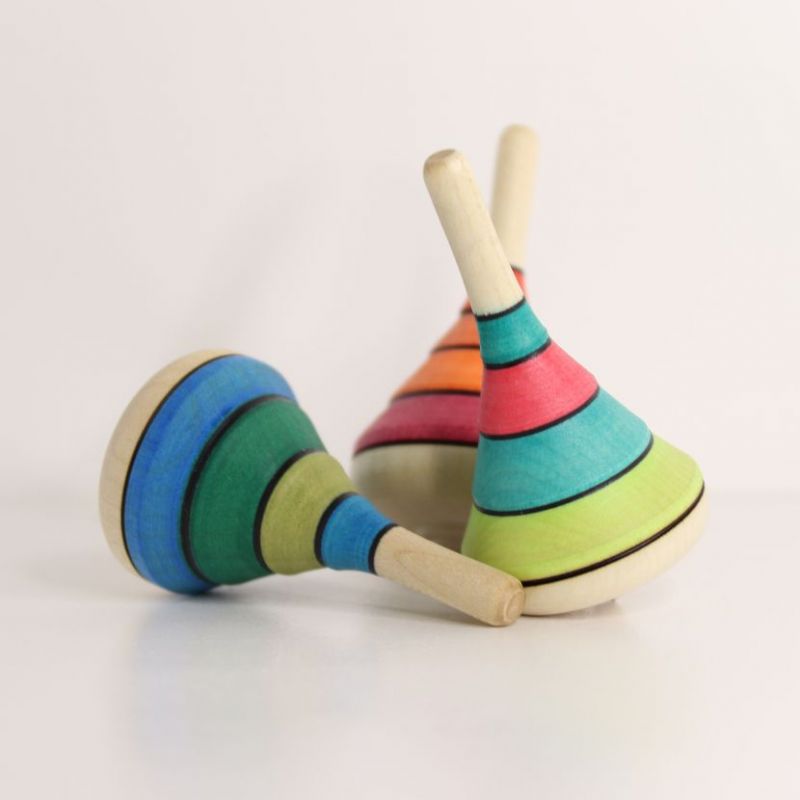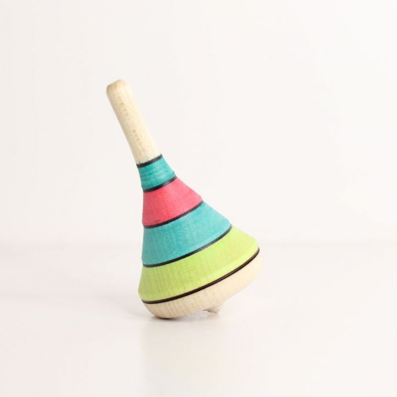 Een mooie, handgemaakte houten tol Harlekin van het merk Mader. Deze mooie tol is voorzien van de kenmerkende zwarte lijnen en voorzien van leuke gekleurde strepen. Deze tol heeft een moeilijkheidsgraad van 2/6:
