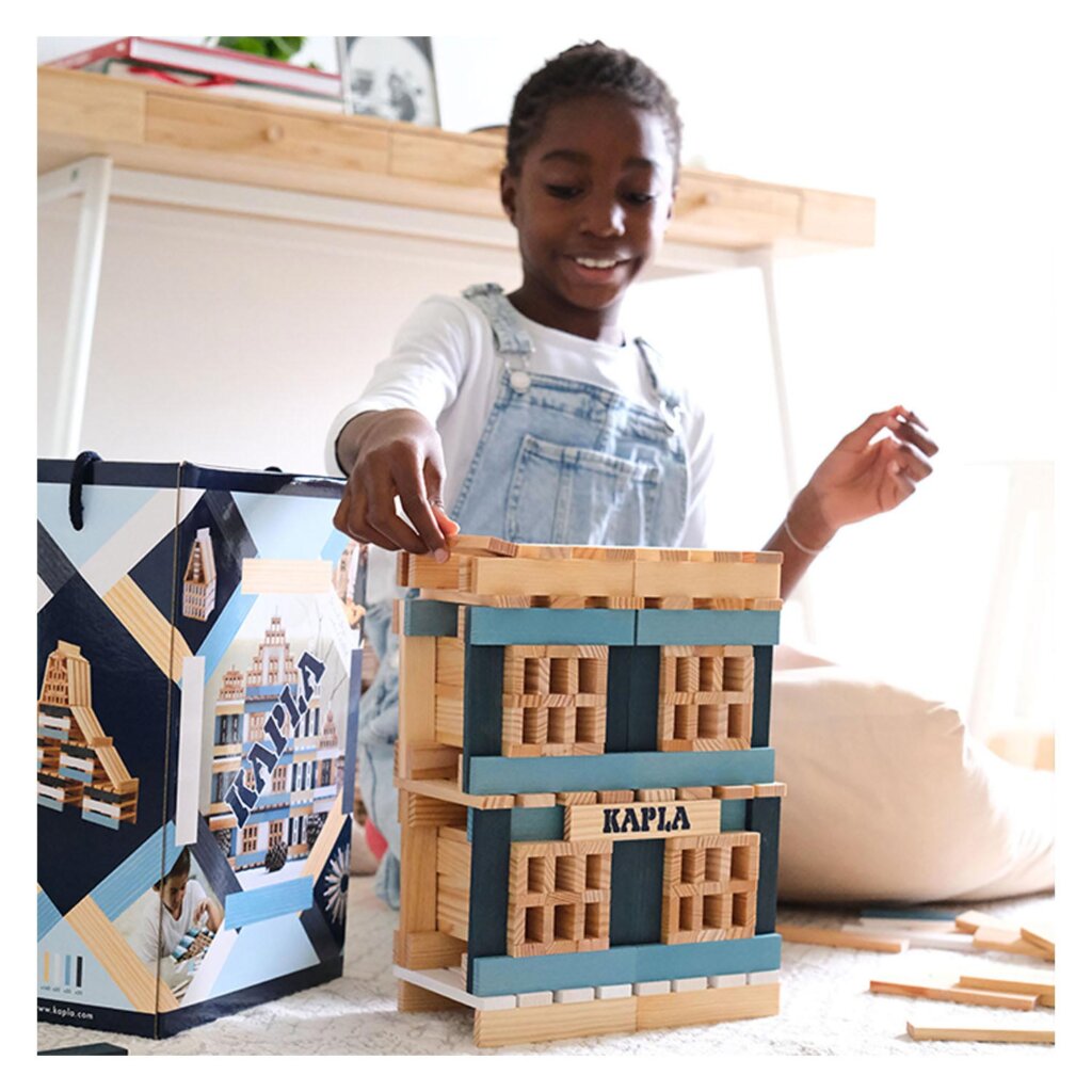 Plankjes van KAPLA worden los en in perfect evenwicht gestapeld, zonder enig punt van bevestiging. De afmetingen van de dennenhouten plankjes zijn 11,8 x 2,4 x 0,8 centimeter. Een constructief spel met creatief en duurzaam materiaal. Voor kinderen gaat een wereld vol fantasie en plezier open!