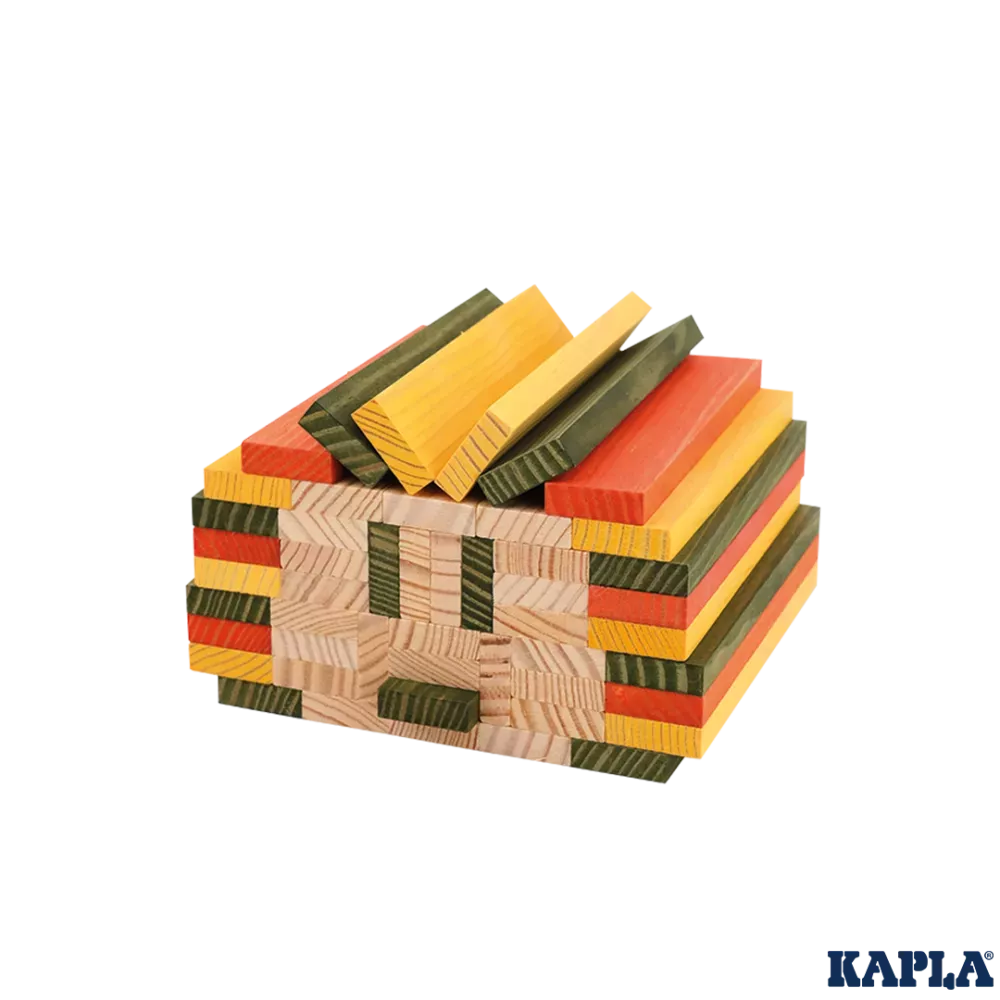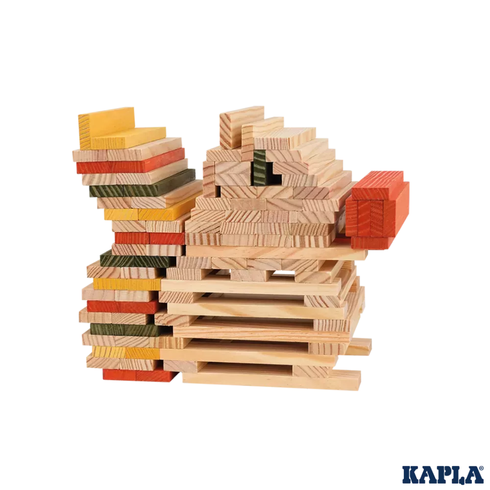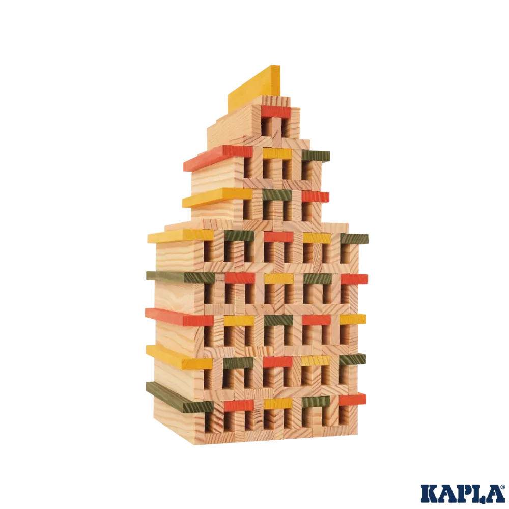 Plankjes van KAPLA worden los en in perfect evenwicht gestapeld, zonder enig punt van bevestiging. De afmetingen van de dennenhouten plankjes zijn 11,8 x 2,4 x 0,8 centimeter. Een constructief spel met creatief en duurzaam materiaal. Voor kinderen gaat een wereld vol fantasie en plezier open!